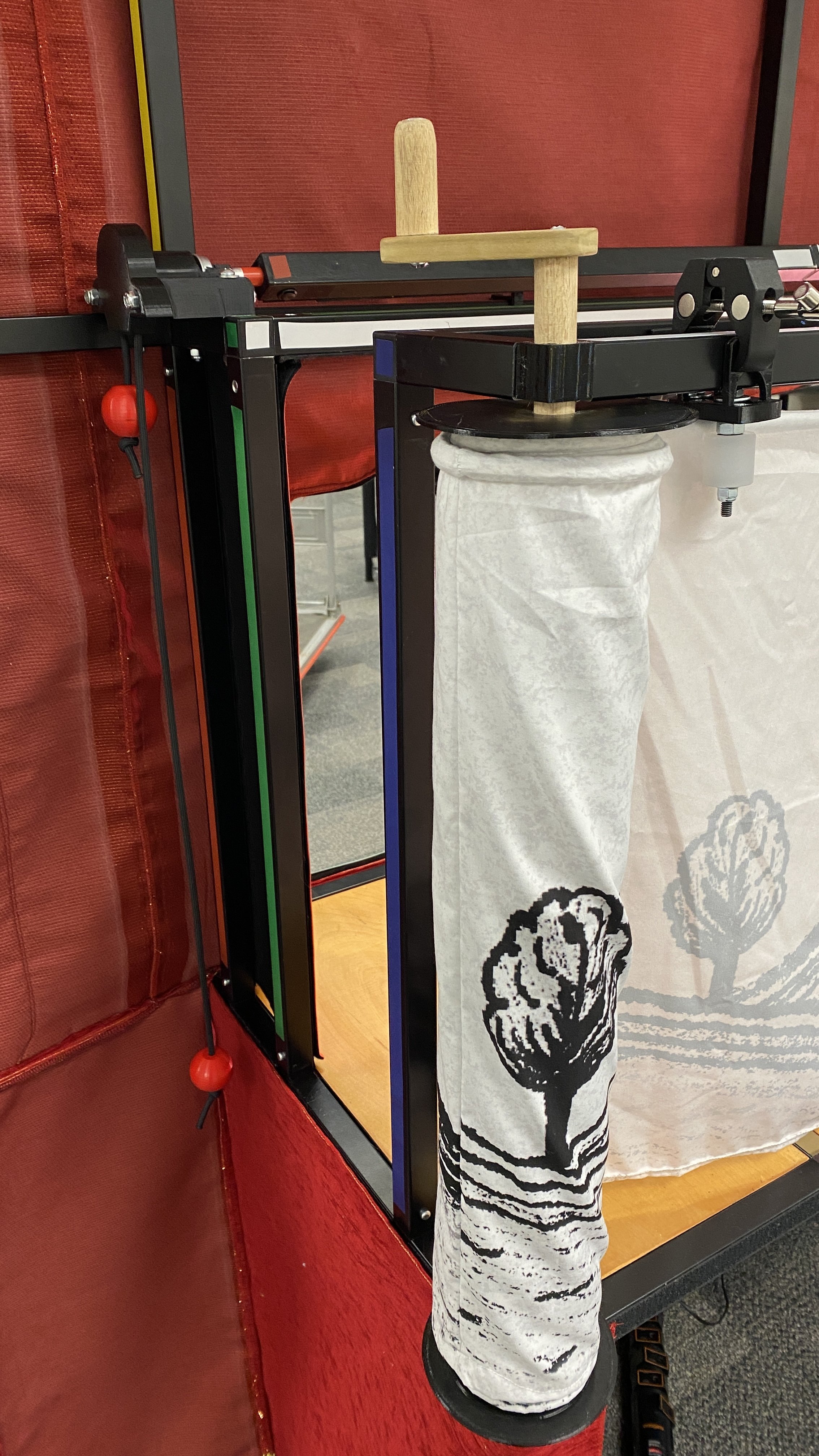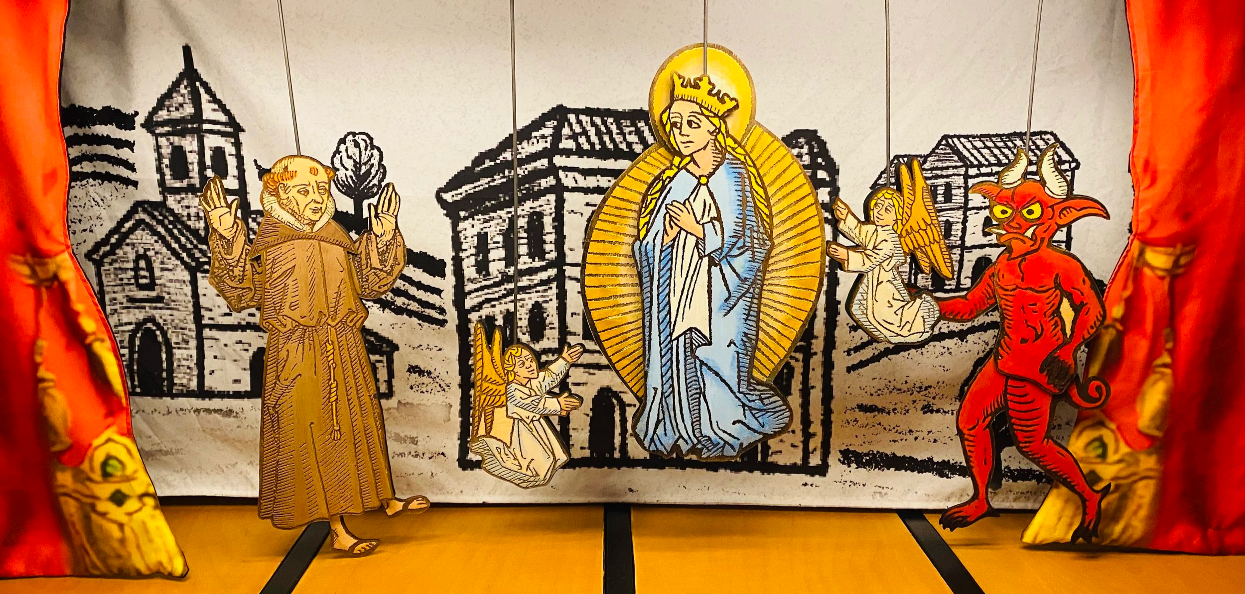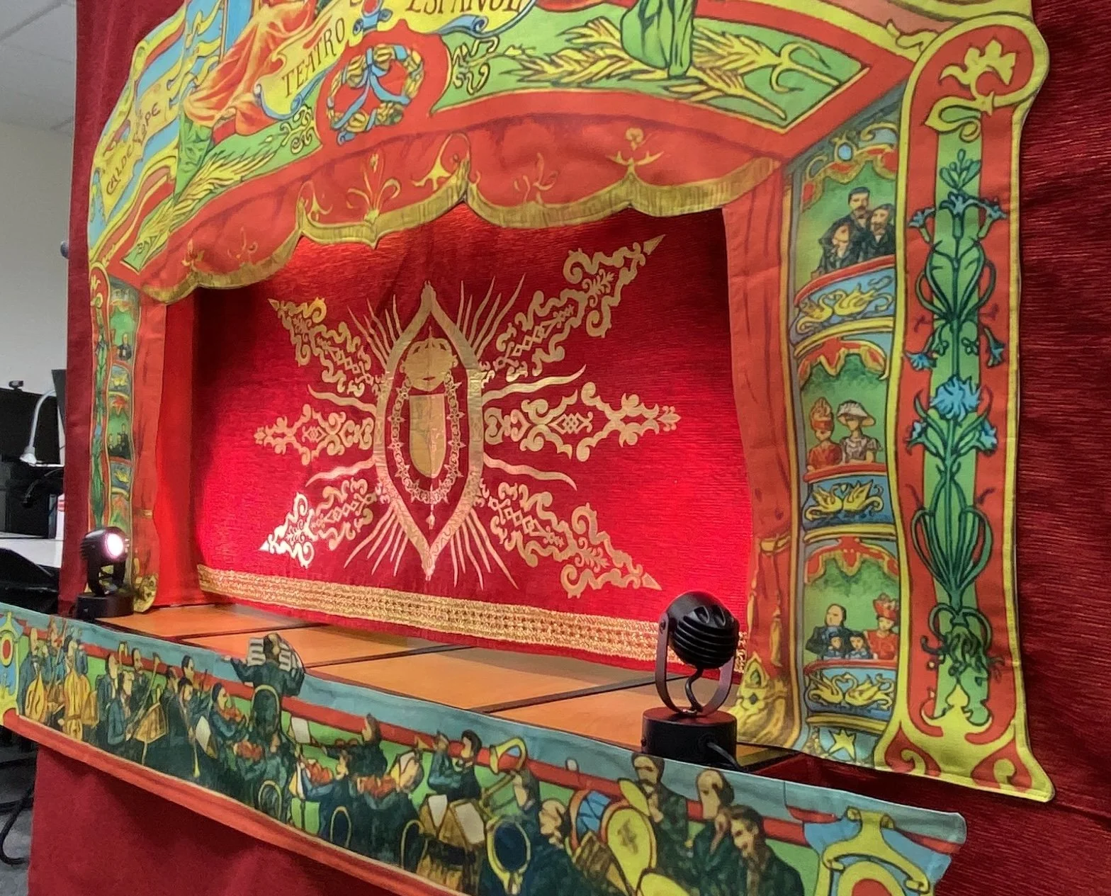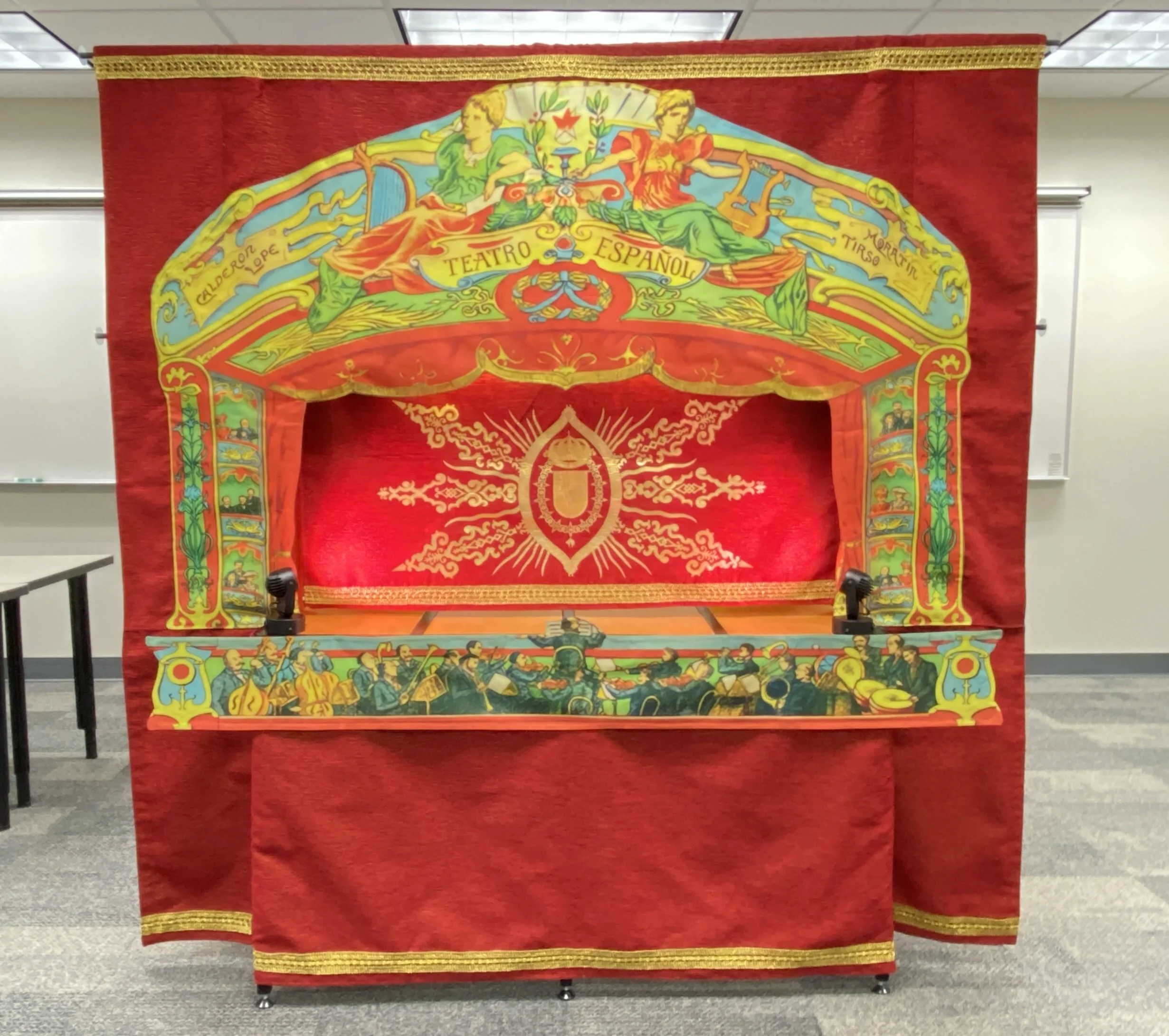 Sporting a custom-designed, modular frame, inspired by a Spanish “toy theater” design from the early 1900’s, this dynamic stage is beautiful, portable, and adaptable for intimate shows using shadow, rod, and marionette puppets.